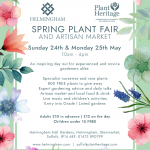Continue reading →Helmingham Plant Fair Programme: Alongside the stalls of the specialist nurseries and artisans, we have an exciting programme of talks and entertainment. Sunday 24th May Talks: 11.30am – 12.30pm Garden Speaker – Jim Marshall – The renewal of Benton End Gardens – home of Sir Cedric Morris. 12.30 – 1pm Meet the Experts Q&A: Jim Marshall – RHS Gold Medal Winner and National Trust Gardens Advisor Matthew Tanton Brown – Nurseryman (A Place for Plants) and Broadcaster Anthony Pigott – Scientific … Continue reading →