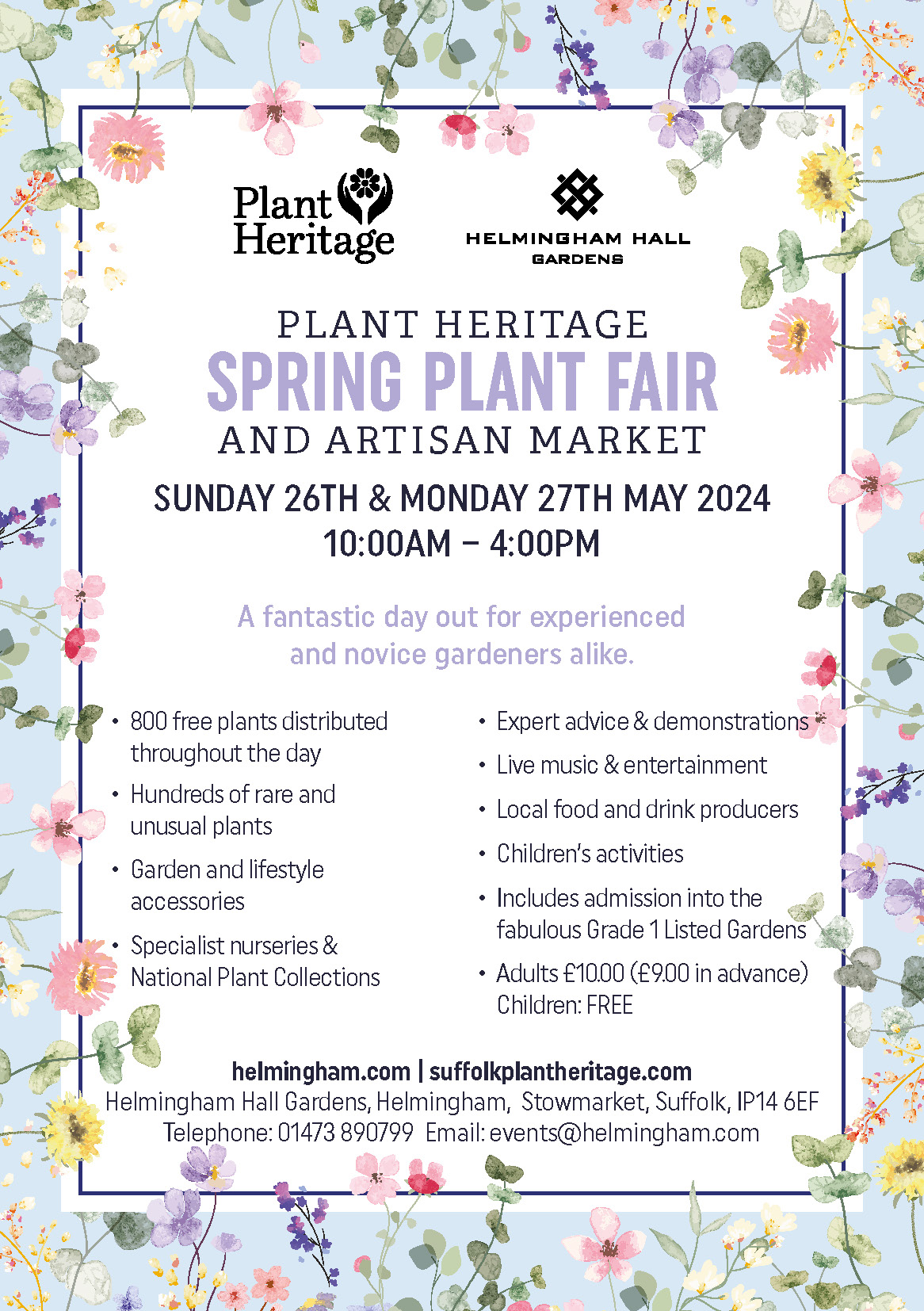 Tickets for the Spring Plant Fair can be purchased in advance from the Helmingham Hall web site or on the gate on the day.